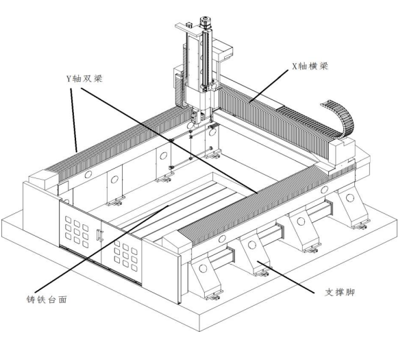 傳動結構:X、Y軸采用(yòng)精密齒條,Z軸采用精密絲杆。全(quán)部軸采用滑軌傳動,保證運行精度;