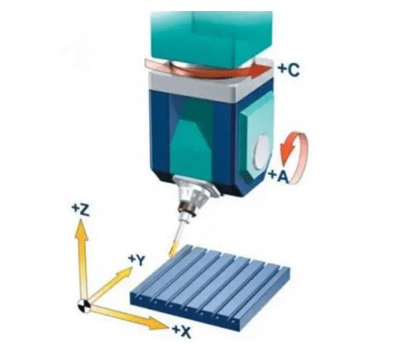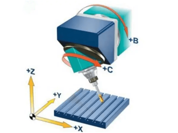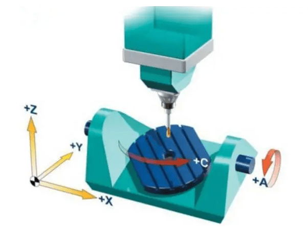 五軸加工(gōng)通過X、Y、Z三個直線軸運動,再配以A、B、C三個回轉軸運動,具有(yǒu)三軸立式加工中心和臥式(shì)加工